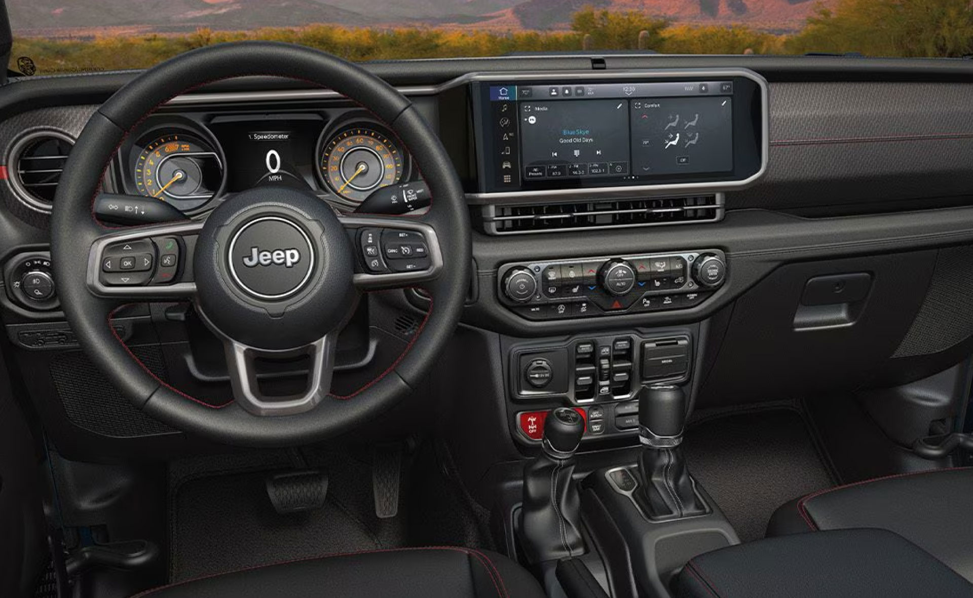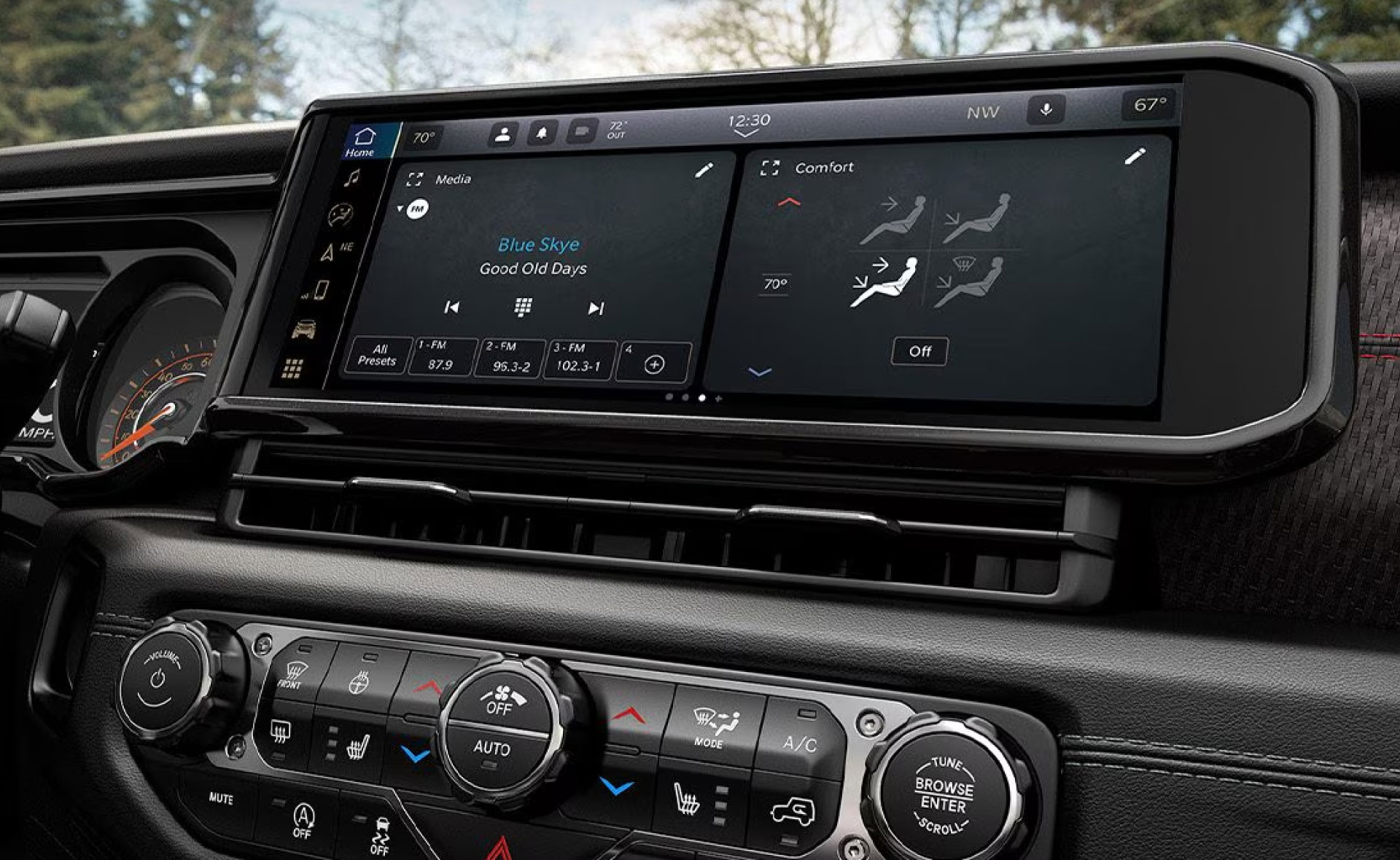 Jeep® JT incluye de forma estándar el sistema Uconnect® 5 con una nueva pantalla táctil de 12.3 pulgadas.